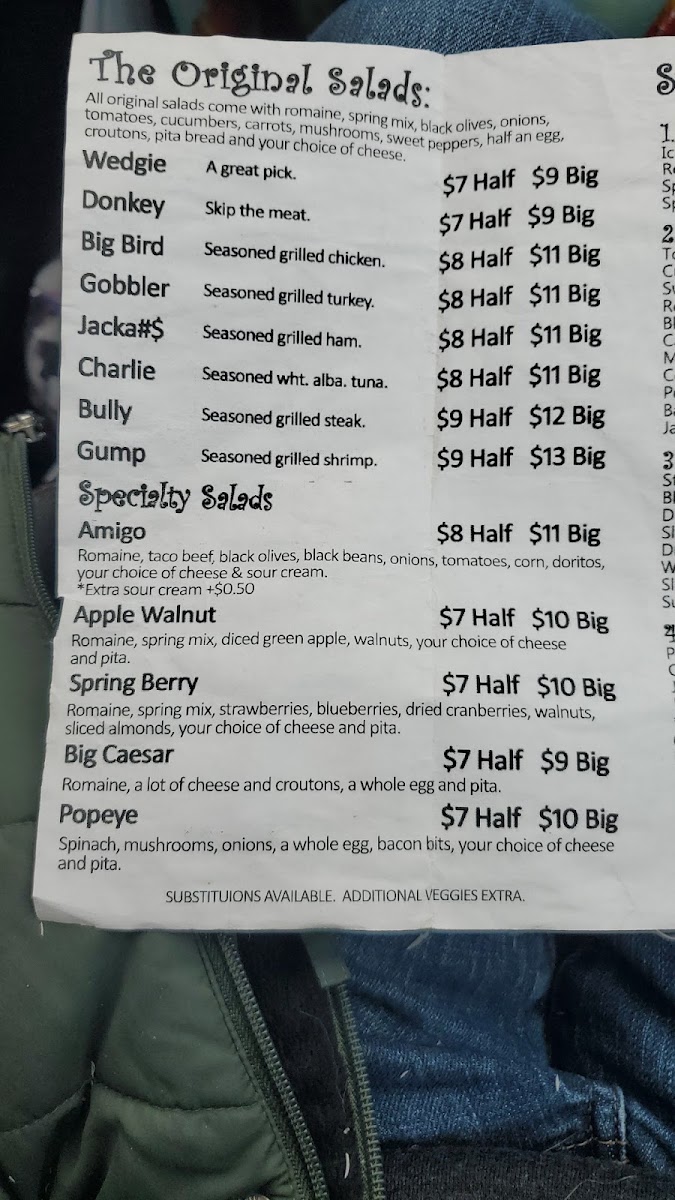 Big Ass Salads Menu